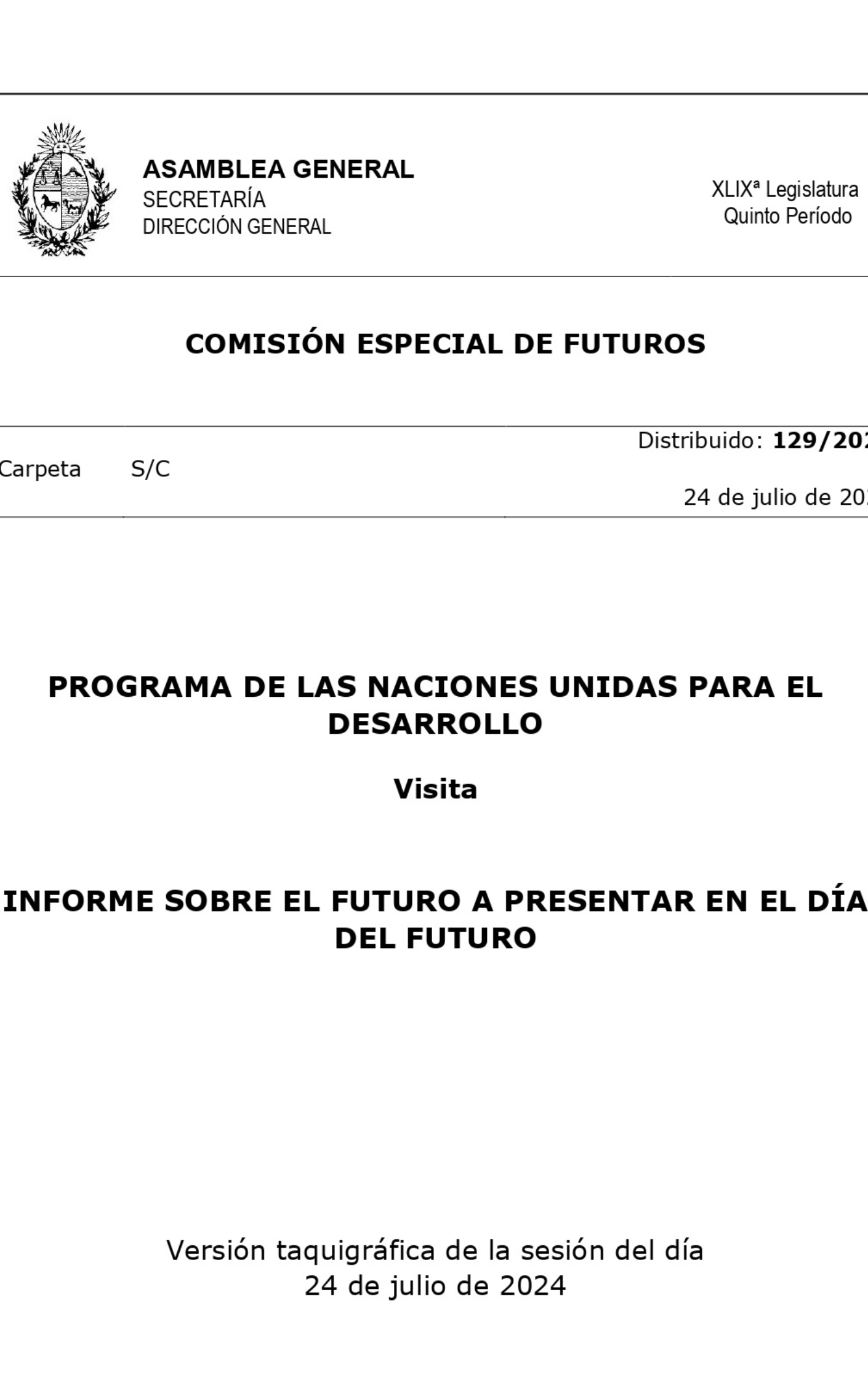 La Comisión de Futuros del Uruguay es un organismo creado para promover la reflexión y el análisis sobre las tendencias y desafíos que enfrenta el país a mediano y largo plazo. Aquí se encontrará informes, estudios y recursos clave que abordan tendencias emergentes y escenarios estratégicos relevantes para el desarrollo del país. Todos los documentos están organizados de manera intuitiva y son fácilmente accesibles, garantizando que los investigadores, responsables de políticas y ciudadanos interesados puedan acceder a información actualizada y fundamentada para una mejor toma de decisiones en el ámbito público y privado.